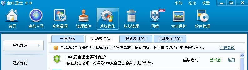 我們再看看金山衛(wèi)士的優(yōu)化建議:
