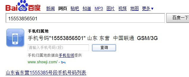 | 15553856501,這個手機號,今天給我發一條詐騙手機短信,內容如下:“截止2012年3月10日:已減去你費用1500元,詳詢:0371-61117070《工行》”。 這種短信,我見多了,一看就是個騙子,工行的客服號是95588,是五位的。而騙子留的這個號碼,只是一個小靈通類的號碼。另外,工行如果給你發信息,應該也是用他們的客服 號發的,而不會用手機號發。所以,我鑒定這個信息是詐騙信息。 15553856501這個手機號,我也用百度查詢了,信息如下: