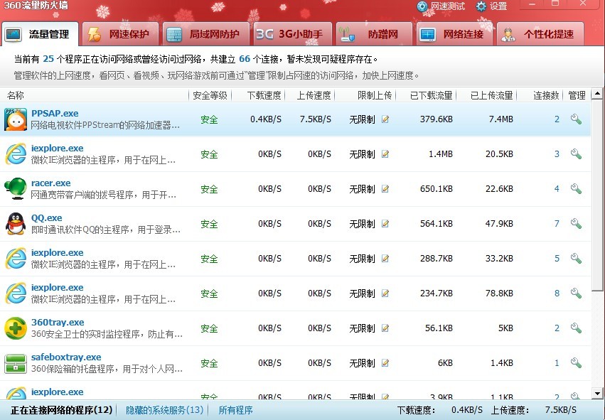 最近,我關閉PPS后,發(fā)現(xiàn)進程項里沒有這個項目了,用360流量管理查看,也沒有什么。可是網(wǎng)速卻比較慢。