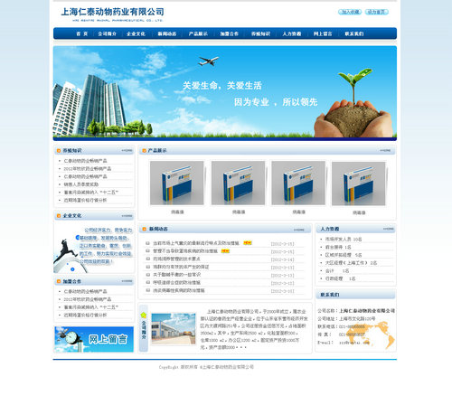上海仁泰動物藥業公司網站今日設計完成