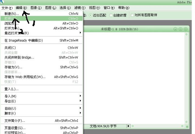 注意:箭頭一是指新建文件,箭頭二是指打開文件。