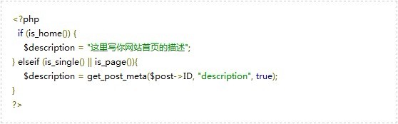 保存,更新,即可。 微數據的應用 做這一步工作的原因僅僅是因為我個人比較重視版權,所以希望在谷歌的搜索結果中出現我的名字等信息;此外就是出于SEO研究的目的(網站或頁面權重達到什么樣的值后,谷歌會顯示微數據信息)。注意百度是不支持微數據。除非是大型網站加入百度開放平臺。 關于微數據的解釋和使用方式,請參考谷歌站長工具中的相關介紹《關于豐富網頁摘要和結構化數據》 WordPress內容層SEO 內容層方面的WordPress SEO,主要涉及Title, Meta Description, robots.txt Sitemap等方面。至于內容創作方面的因素,不在WordPress SEO的范疇之內。 WordPress標題和描述SEO 這個應該沒什么好說的,采用“文章名-網站名”或“文章名-目錄名-網站名”的方式進行。WordPress默認和部分模板所采用的Title標簽需要改動,直接替換header.php中的相關Title信息即可。改動的代碼網上有很多,可自行查詢。 同理,為了防止搜索引擎自己抓取網站描述,從而影響用戶在搜索結果頁面看到的文字,我們也需要對Meta Description做自定義處理,代碼如下: