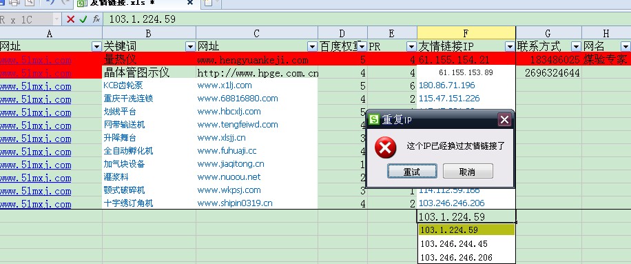 | No.1:不宜交換快照不正常的?煺帐菣z查站點整體表現的最好的數據之一?煺兆詈檬歉籼斓模熘畠鹊目煺沾沃。如果超出7天,甚至快照是很久之前的站,那么你就最好不要交換了,當然我們也不要對快照做過于苛刻的要求,就拿6.28百度的K站事件,很多正規高權重的站點都可能出現快照不正常的情況。 No.2:不宜交換交叉鏈接。除非你有這方面的需求,否則的話筆者是堅持不建議大家做這種友情鏈接。如果你的站點有大量的交叉鏈接,很容易被搜索引擎查出,并認為你是在做站群,或者是購買鏈接。其所帶來的影響你懂得。對于這點,筆者的建議是借助EXCEL文檔,做成一個友情鏈接記錄單,如下圖所示,我們可以清楚的記錄友鏈的交換情況。