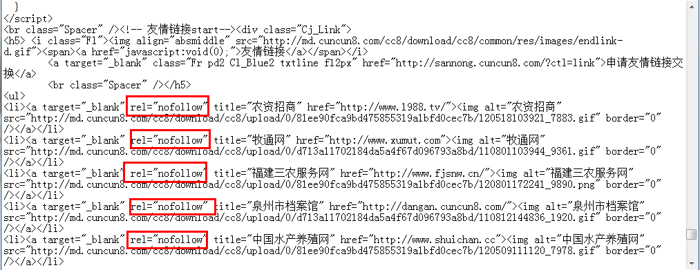 No.3:不宜交換內頁鏈接。這一點并不是絕對的,假如對方站點的內頁權重非常的高,也是可以考慮的,如果對方的站點時內頁同時權重收錄等等不如你,那么即使對方說的多好聽,筆者都不建議你與其進行交換。 No.4:不宜交換含js代碼的鏈接。這點是好多朋友換鏈接的時候忽視的。檢查的方我們可以把鼠標至于對方站點的友鏈上 ,看一下狀態上的地址是否是跳轉地址,同時我們可以查看站點的頁面代碼,看看是否有跳轉的代碼,如下圖所示。 No.5:不宜交換導出鏈接太多的鏈接。根據蛋糕原理。分的人越多,你得到的就越少。即使對方的權重是9。但他有好幾百個友情鏈接。根據谷歌PR計算公式:PR(a)=d+(1-d)*(網頁A的PR值/網頁A導出的鏈接)+……(1-d)*(網頁N的PR值/網頁N導出的鏈接)。根據這個公式算下來,從這個站點上你所傳遞過來的權重少之又少,對此我們在交換友鏈的時候,不要只是關注對方權重有多高,導出鏈接往往影響更大。 No.6:不宜交換含有nofollow標簽的鏈接。nofollow標簽做優化的人都應該清楚它的用處吧。他會阻止蜘蛛進行跟蹤,同時也阻止了權重的傳遞。查詢的方法也很簡單,我們只要直接打開對方站點頁面的源文件,查看其中nofollow的事情情況。當然也并不是一定不換,如果是一些流量大的站點可以換,雖然有該標簽,但是這也可以為我們的站點帶來一定的流量。就如同我們知道百度經驗的外鏈有nofollow標簽,但是百度經驗的外鏈可以很好的為我們帶來流量,我們也是可以適當的建設的。