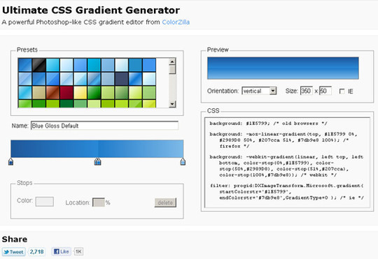 YAML Builder是強大的可視化布局工具,只需要簡單的設置參數和拖拽模塊就能快速創建基于YAML的布局。 Ultimate CSS Gradient Generator by ColorZilla