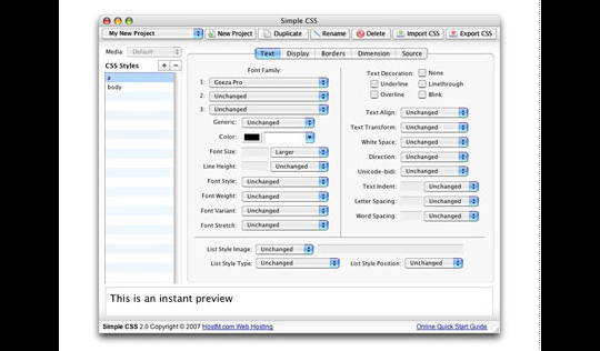 Simple CSS 幫助你非常容易的創建層疊樣式表。 Firdamatic: the Design Tool for the Uninspired Webloggers