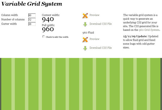 The variable grid system 是一款快速生成CSS網格的工具,基于 960 網格系統。