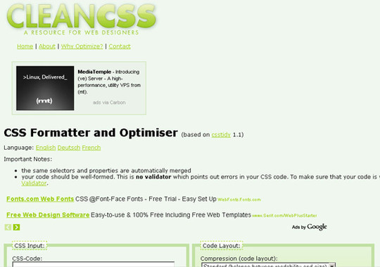 CleanCSS 是一款很棒的CSS格式化和優化工具。